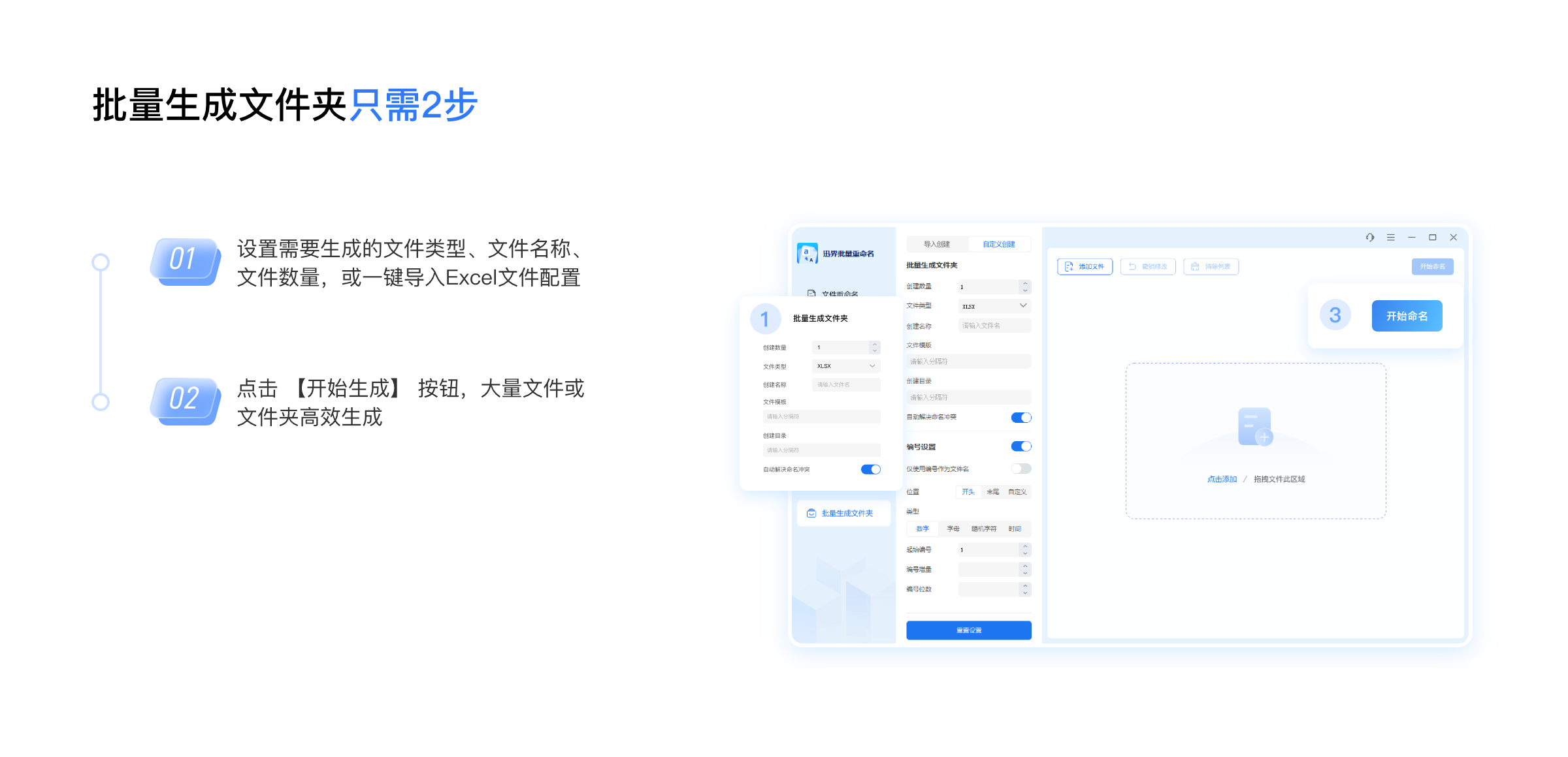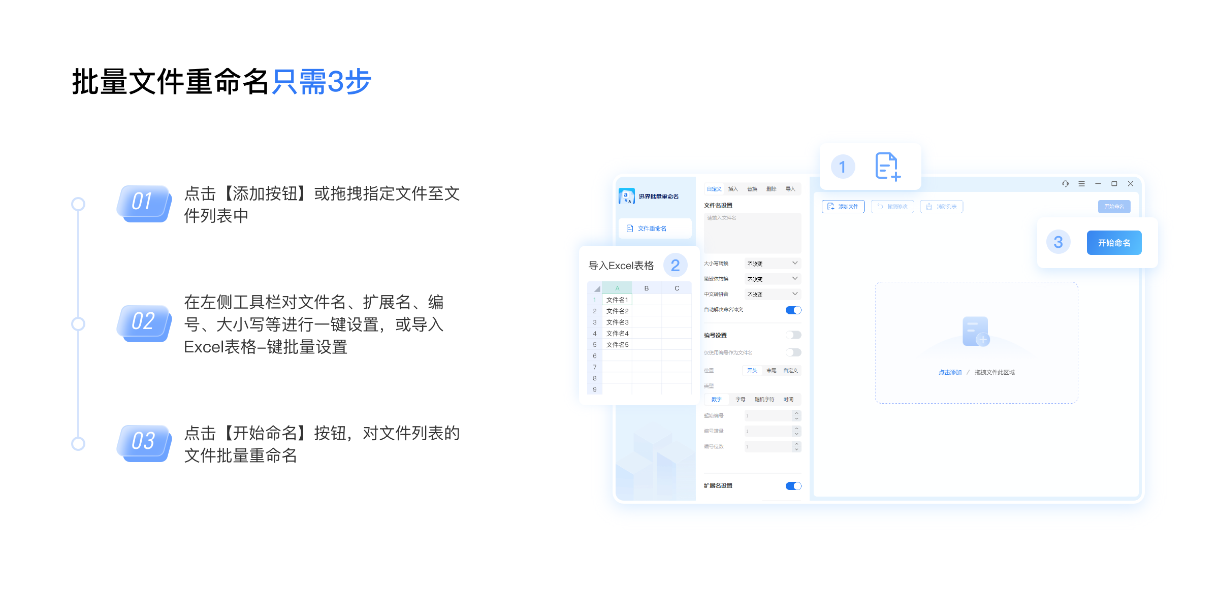 批量编号设置支持数字、字母顺序命名,或为多个文件名添加字母、数字 -