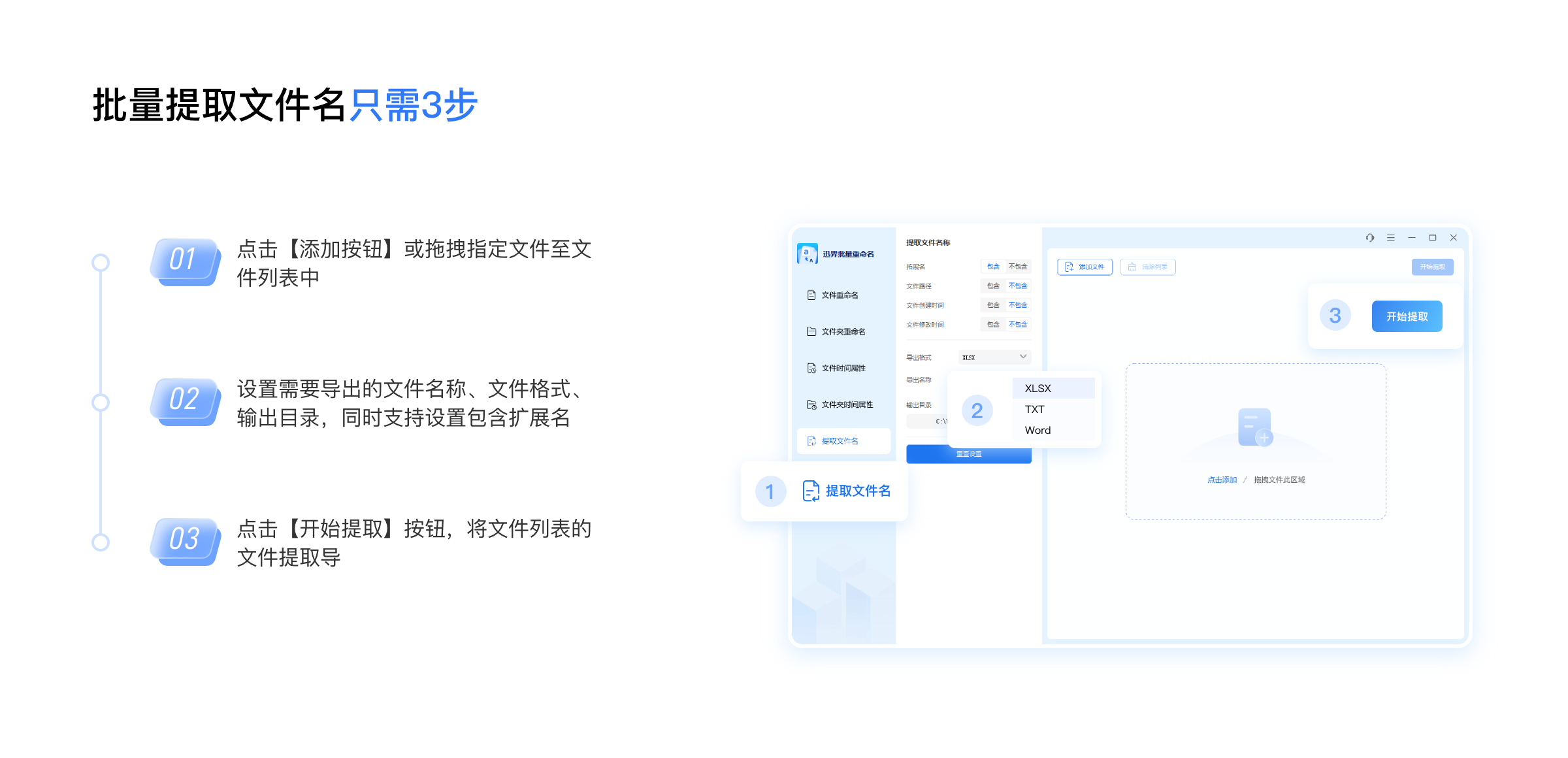 提取文件夹名批量提取多个文件夹名,一键导出为excel、docx、txt格式 -