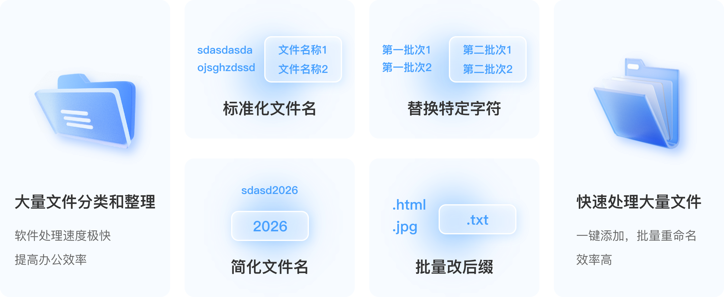 批量重命名不限制文件类型,一键即可对所有文件进行重命名 -